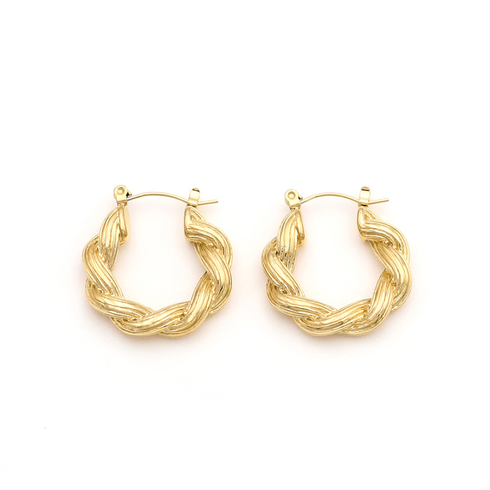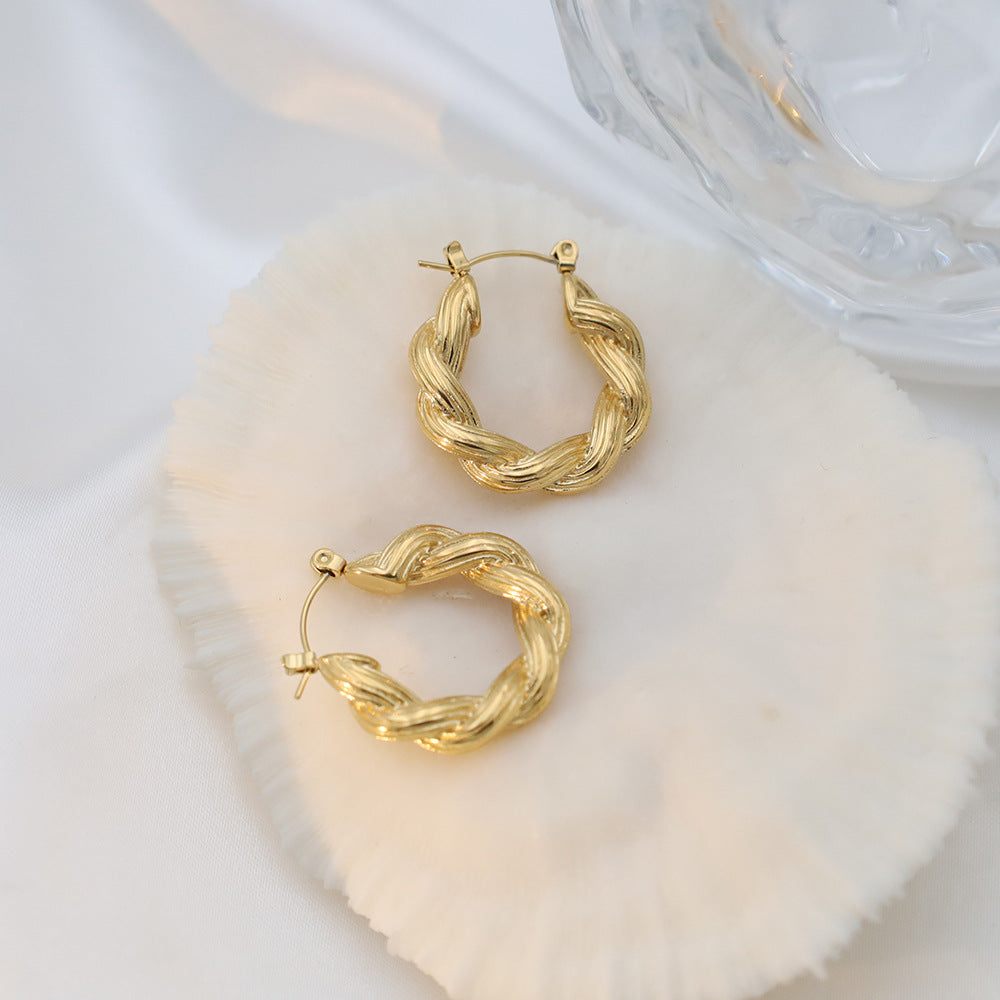 Stainless Steel Gold Plated Twisted Hoop Earrings