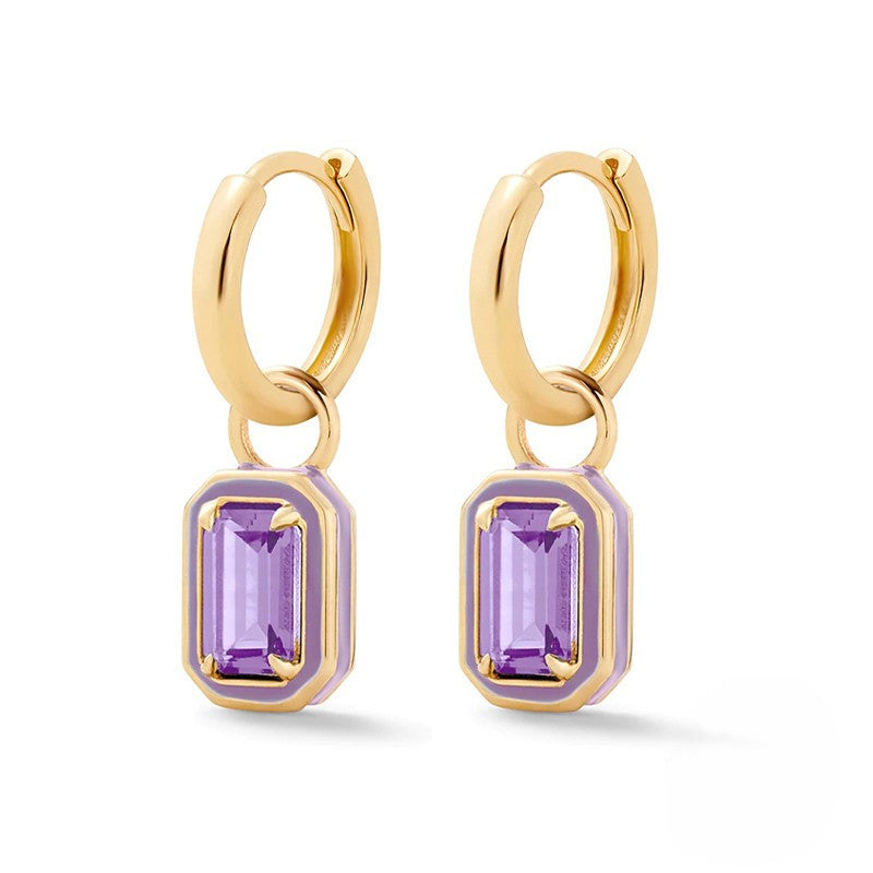 Rectangle Coloured Cubic Zirconia Drop Earrings