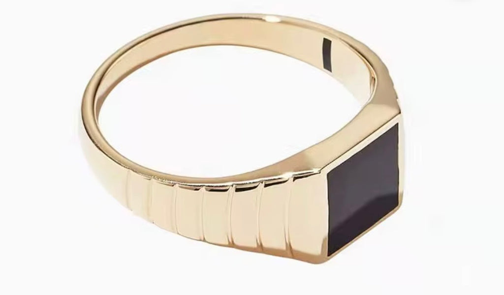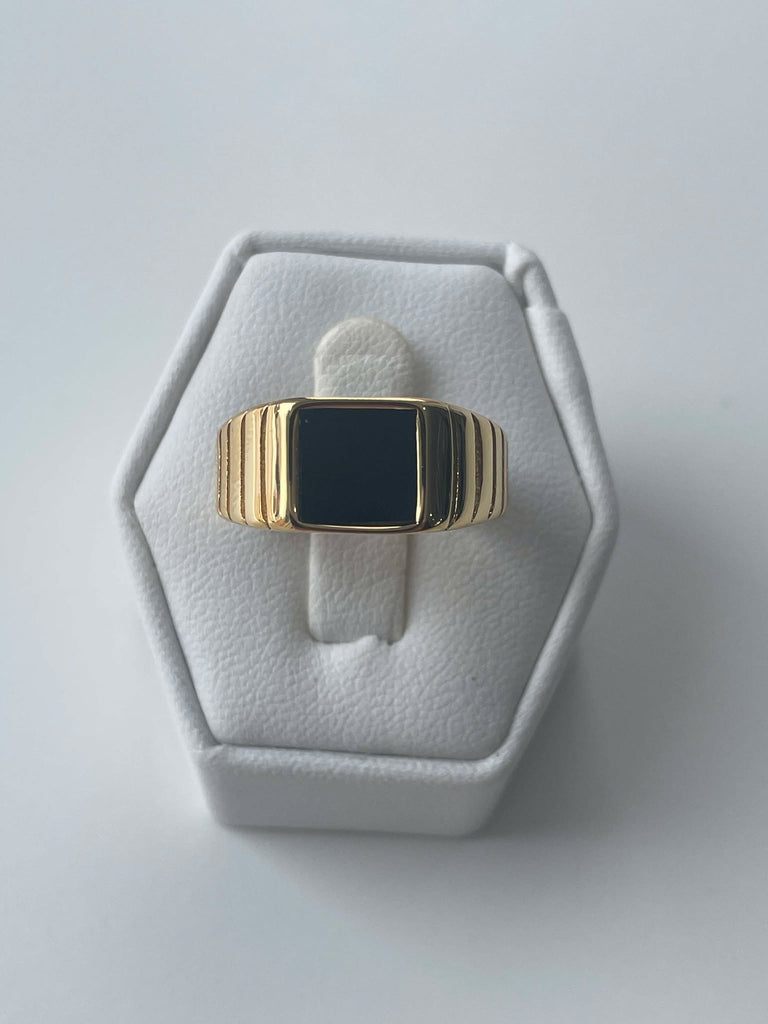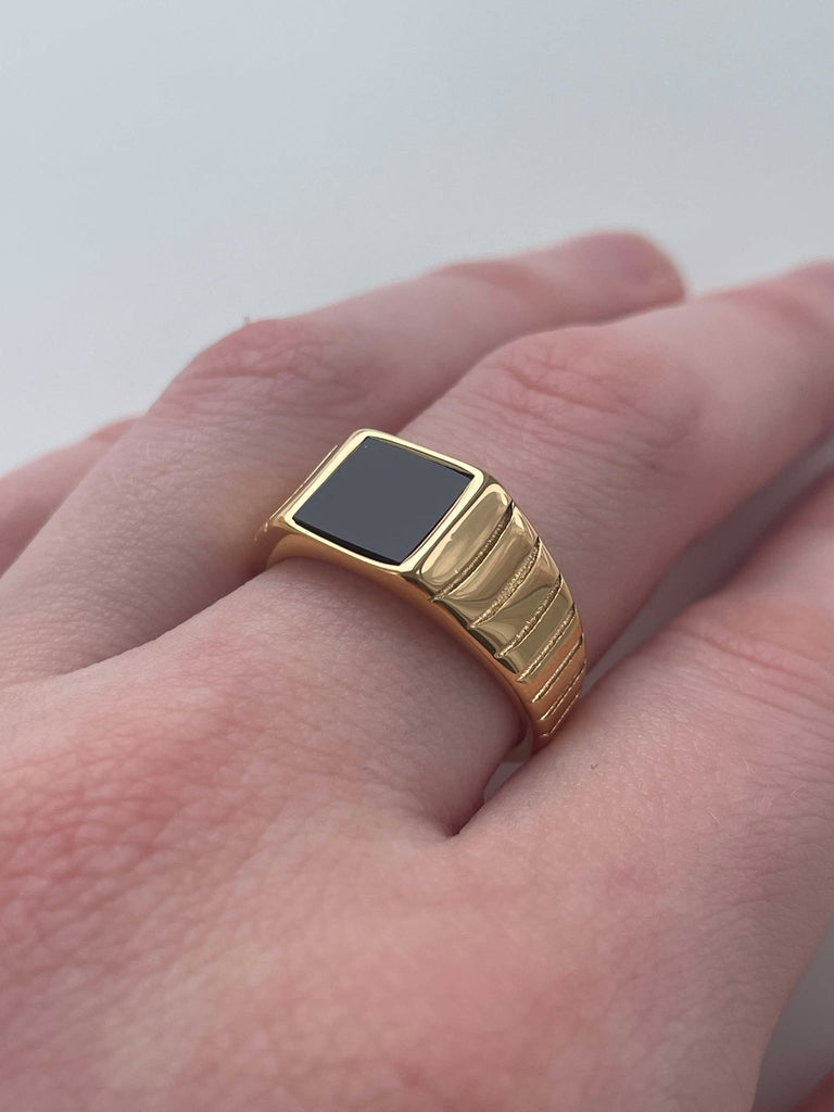Square Black Onyx Signet Ring made of Gold-Plated Stainless Steel.