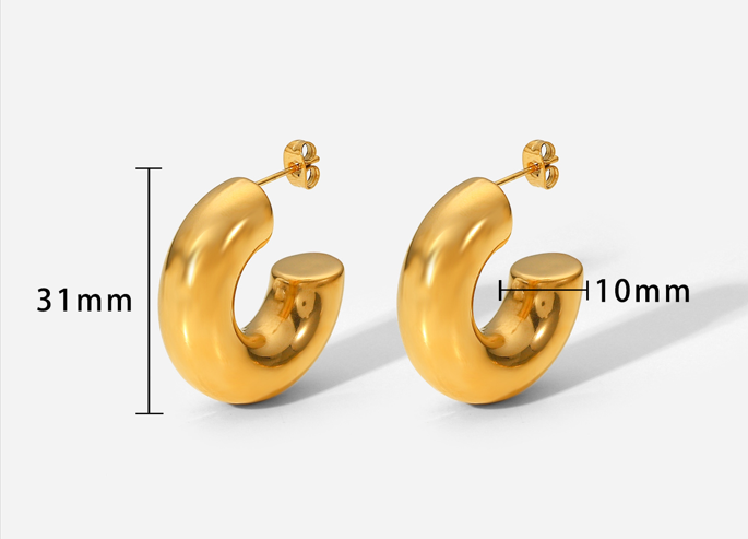 Elevate your style with the chic Christine Earrings – a testament to modern elegance. Gold-plated stainless steel with a polished finish, these earrings' unique "C" shape and reflective quality captivate and shimmer. Perfect for a mature, fashionable look.
