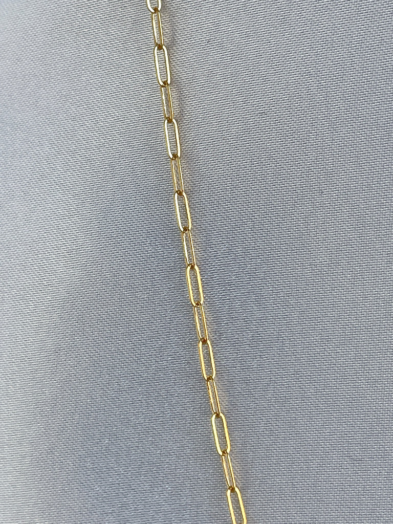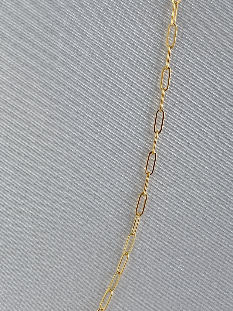 This dainty 14k Gold-Filled 18" Paperclip Chain Necklace is a timeless staple, perfect for layering or wearing solo. Its sleek, minimalist links catch the light beautifully, adding a subtle shine to any outfit. Crafted with durable gold-filled material, this necklace resists tarnishing and maintains its radiant finish for years to come. Whether you're dressing up for a special occasion or adding a bit of shine to your everyday look, this versatile piece is sure to become a go-to favourite in your jewelry collection.